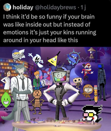 >>166076The strong variation of characters (that I know of) in this image makes me think this person has a completely warped and unstable sense of self.
