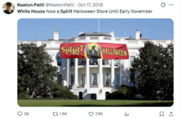I wonder if any of the myriad Jewish writers for late night talkshow hosts made a goof about the White House being replaced by a Spirit Halloween because of the government shutdown or if it was only in my unique vril could I find such a gut-busting gag.