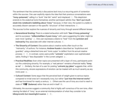 I was going to say the other day that NotebookLM has become boring because it's seemingly more "functional" now and "gets" The Internetâą but that just means it doesn't short circuit and go on random tangents anymore and just b-lines for the post with the most text and spits out "irony this irony that"
