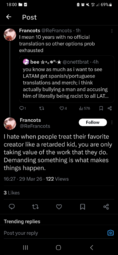 >Babyman this, babyman that because of mucho texto >Even when people actively argue against him and call him retarded