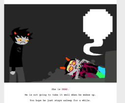 Everything involving Sburb, however, has this air of ULTIMATE COSMIC SIGNIFICANCE invested in it it, even while also being bullshitted up by Hu$$ie as he went. Eh. Eek.