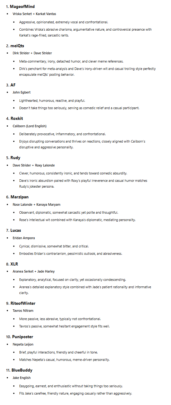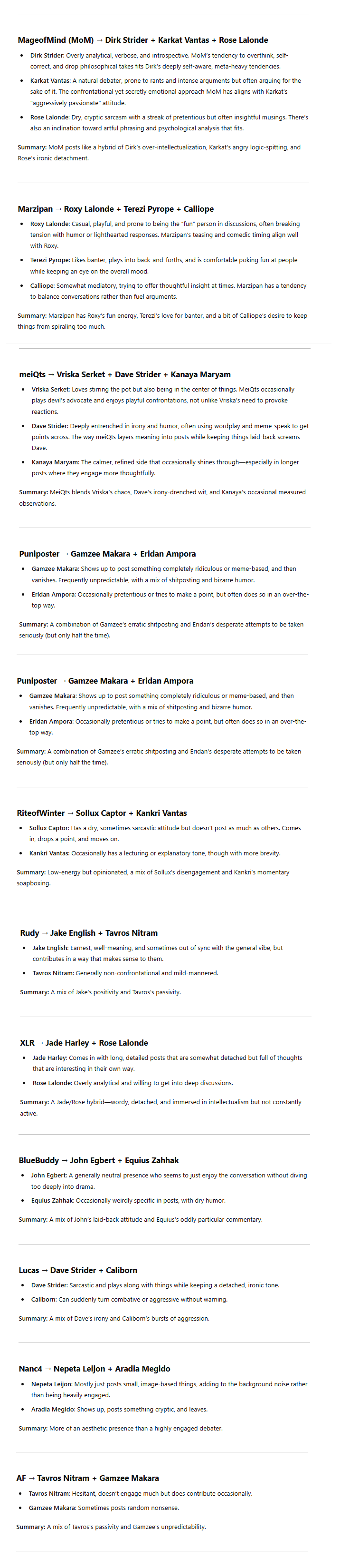 >>105117As rough as the last thread was, we did get one more person who wanted Vriska to put him to sleep. He said he thinks about it almost every day. Dear…