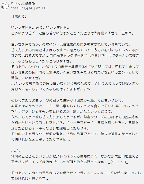 >>106077Feels like a bit of a pre ぶっちゃけ.