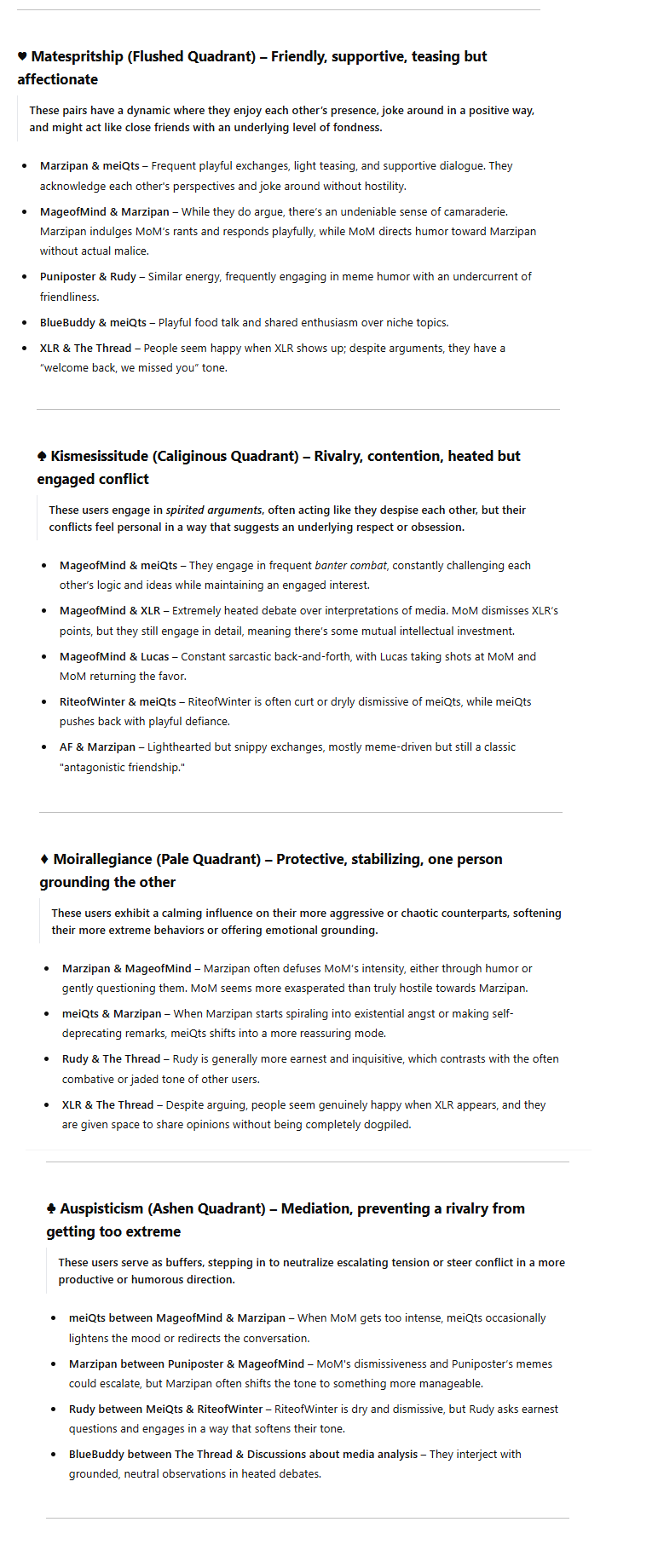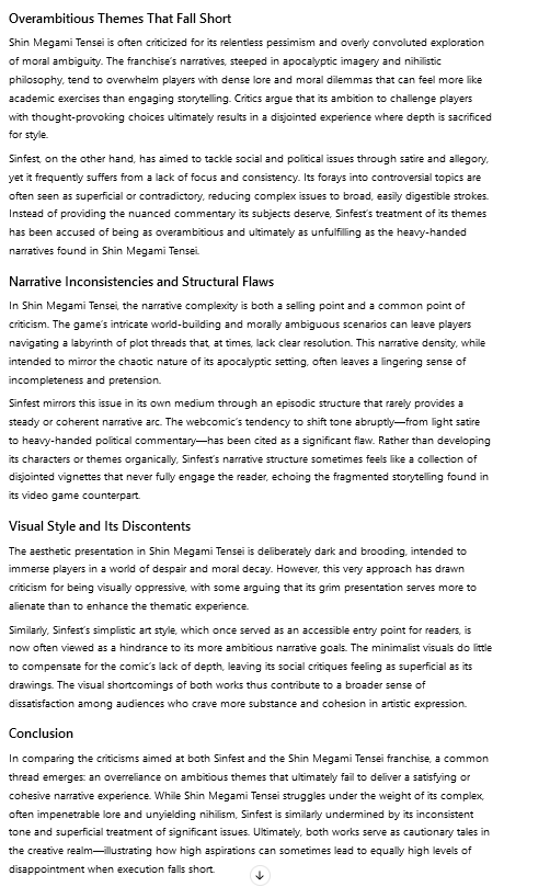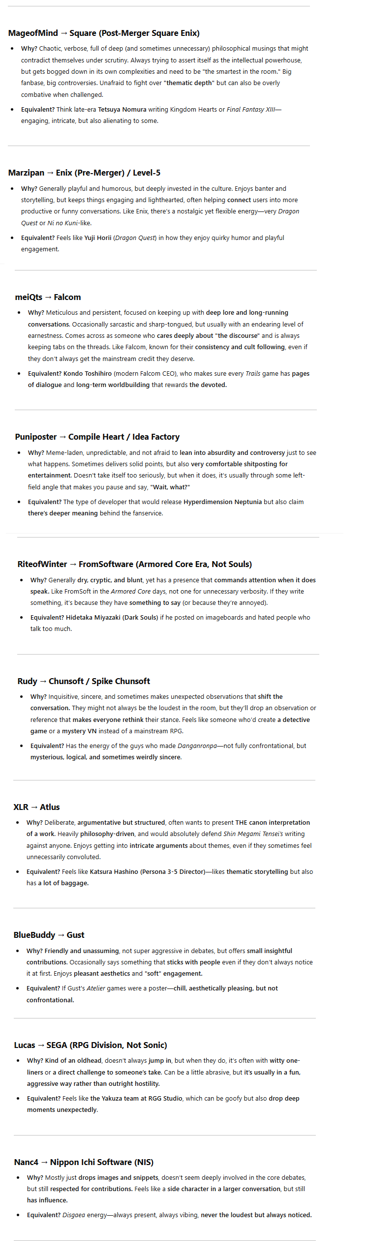 >>106032not all of it is explicitly written down in one place. would you like me to post some of it? last time I counted (at your request btw) I had around 70 things written down, though some things probably needed pruning and others needed adding