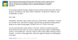 >what's the issue? muh auteurship?More the idea that people still list Undertale as a "One man game" when it was anything but. Just like how Homestuck was essentially never a solo project but still Hu¢¢ie gets circlejerked for things he really shouldn't.