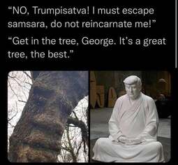 What I never got about Dharmic religions is that for some reason getting reincarnated as a pig or whatever is lower than being a tree. Like, yeah, I'll be slaughtered but I could be a good and just self with my pig thoughts. And then I'm out. If I'm a FUARKing tree, I'm there for like eternity and I can't do shit. Like, when does a tree die? It's not when its leaves die because the tree, ultimately, is still living- it's when it's uprooted. Does that mean mass deforestation is an act of merciful Dharma since you're helping moving around souls up and down through saṃsāra