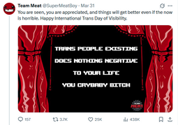 Now he's Tight-lipped due to legal reasons and if you ask anything Meat boy related to him he's very vague or his expression changes drastically.