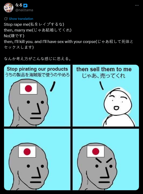 "Tomodachi but they rape and kill in the skits"