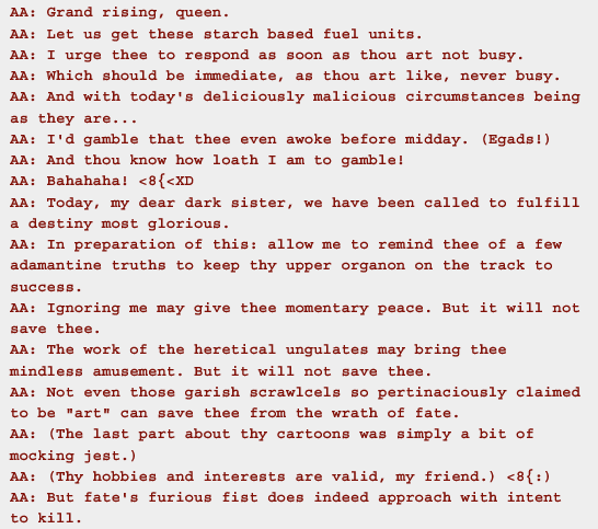 >>17543In that screenshot it's subtle enough, although 'amassing' is a bit much. The register thing goes way, way too far in the rest of the game though and sounds stupid just about everywhere. The script also generally uses too many words and unnecessarily long words.