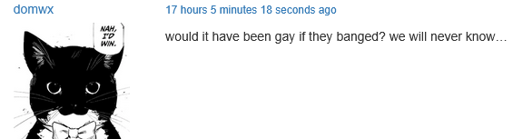 >>18428>Wholesome 100Um, GILCHRIST ALARM!!!!!! Or is this okay because it doesn't have Christian undertones. I'm going to get pissed for the sake of everyone who doesn't because they have inconsistent standards.