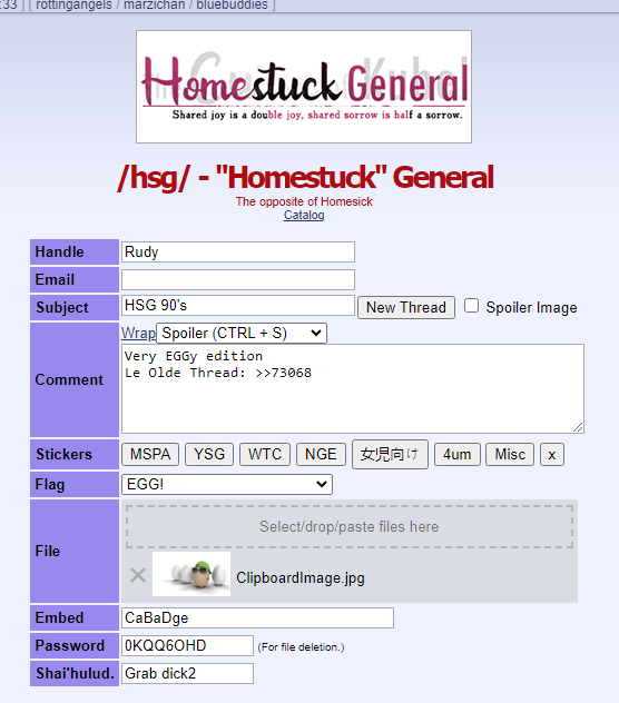 It's been over 7 hours now and it's still "Homestuck" general, instead of another welcoming text. Is it just me or 'p-spam wave lasts this long, and aradiasite.the is stucked hard?