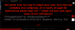 >>63>>62I get that sometimes when pasting a twitter pic into clipboard image, I'm guessing it has to do with size limits. Were you uploading a file?